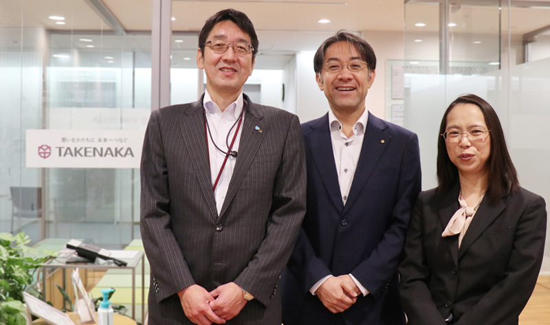(左)管理部長 大塚貴昭さん (中)営業部開発営業担当課長 五閑大輔さん (右)管理部総務・人事グループ主任 稲垣真希さん